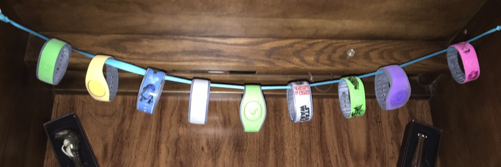 For myself, I went to our local toy store, Hopscotch Kids, and purchased some sidewalk chalk and a Disney jigsaw puzzle. Today, I organized some of my Disney ‘stuff’, made a decoration out of our old magic bands, and drew Stitch on the sidewalk outside our house for people to enjoy while taking a walk. These things brought a little Disney to my life today. They made me feel happy and they made me feel like I am bringing a little happiness into someone elses life as well.