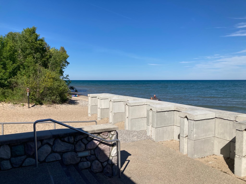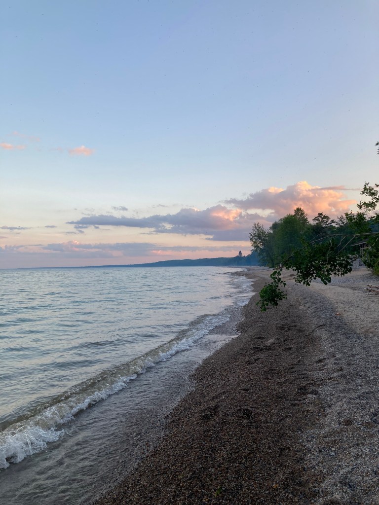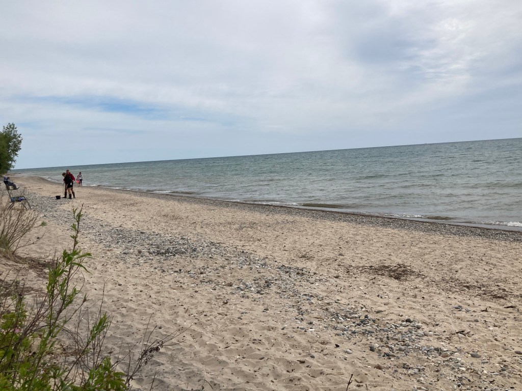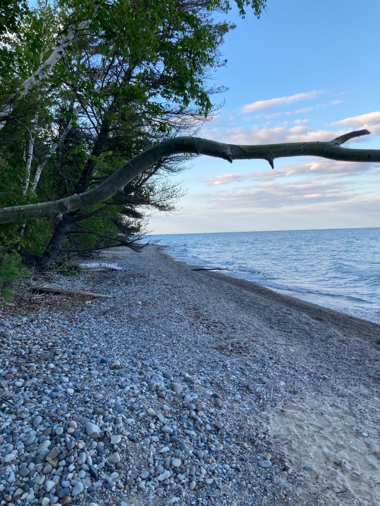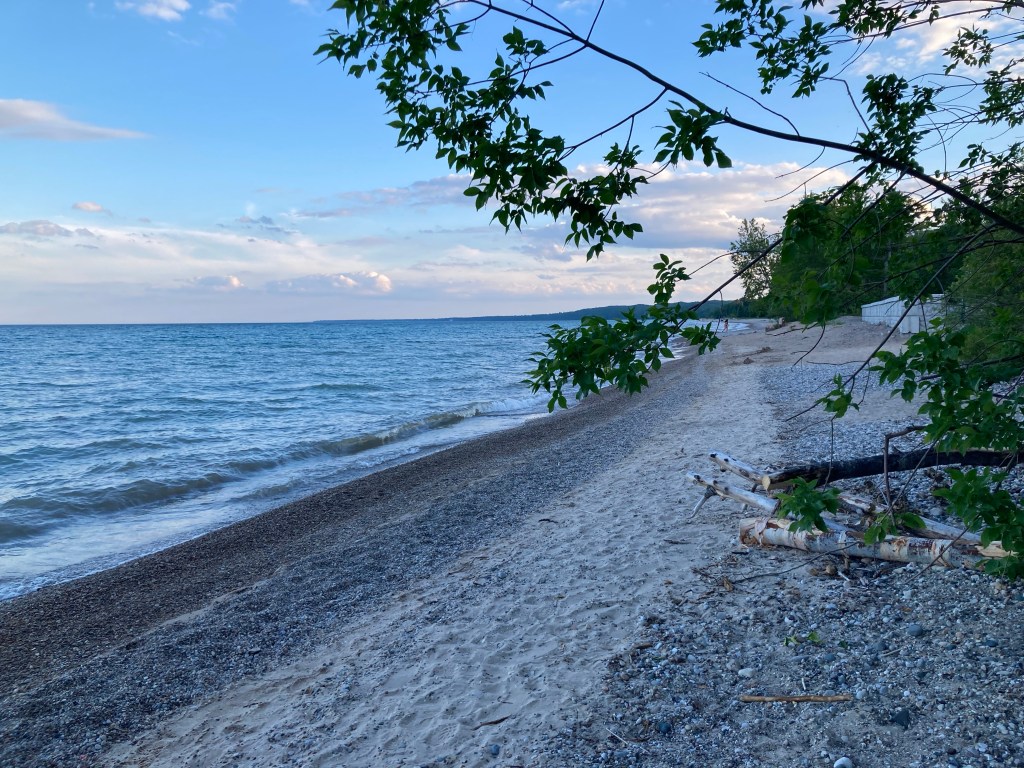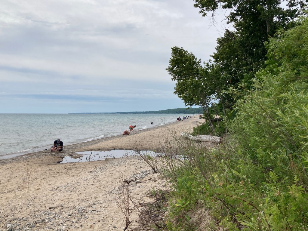 The Beach is very rocky. I would suggest wearing some sort of water shoes. Even though it was July, the water was still very cold. It was fun hunting for rocks. We found plenty of petoskey stones and some other really neat looking ones. There is a day use area that has more sand but still has a lot of rocks nearer the water.