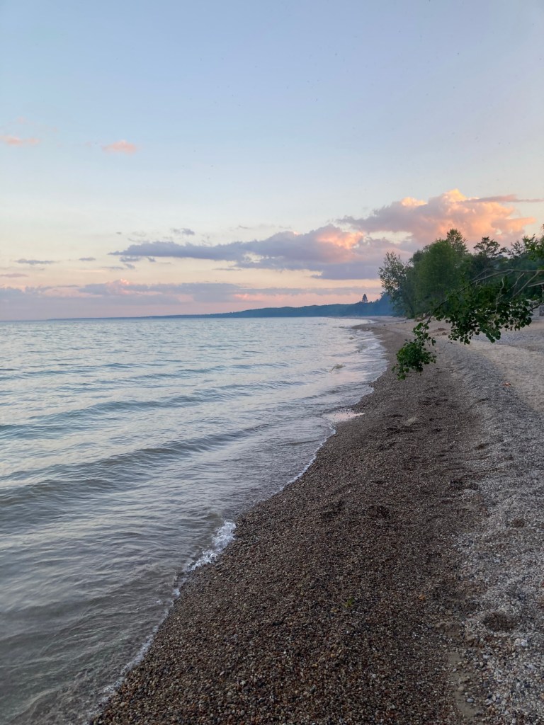First, I want to give a shout out to Pat with the DNR!!! She was AMAZING. She had all kinds of activities for kids and adults alike. There were activity sheets, scavenger hunts, and educational materials for kids. She taught us how to hunt for petoskey stones and explained the kinds of other stones we may find and how to polish them by hand, providing us with the sandpaper we needed. She then told us about Yooper stones (aka Yooperlites) and lent us some black light flashlights to go hunt for them after sunset. She was super nice and helpful. Thank you, Pat!