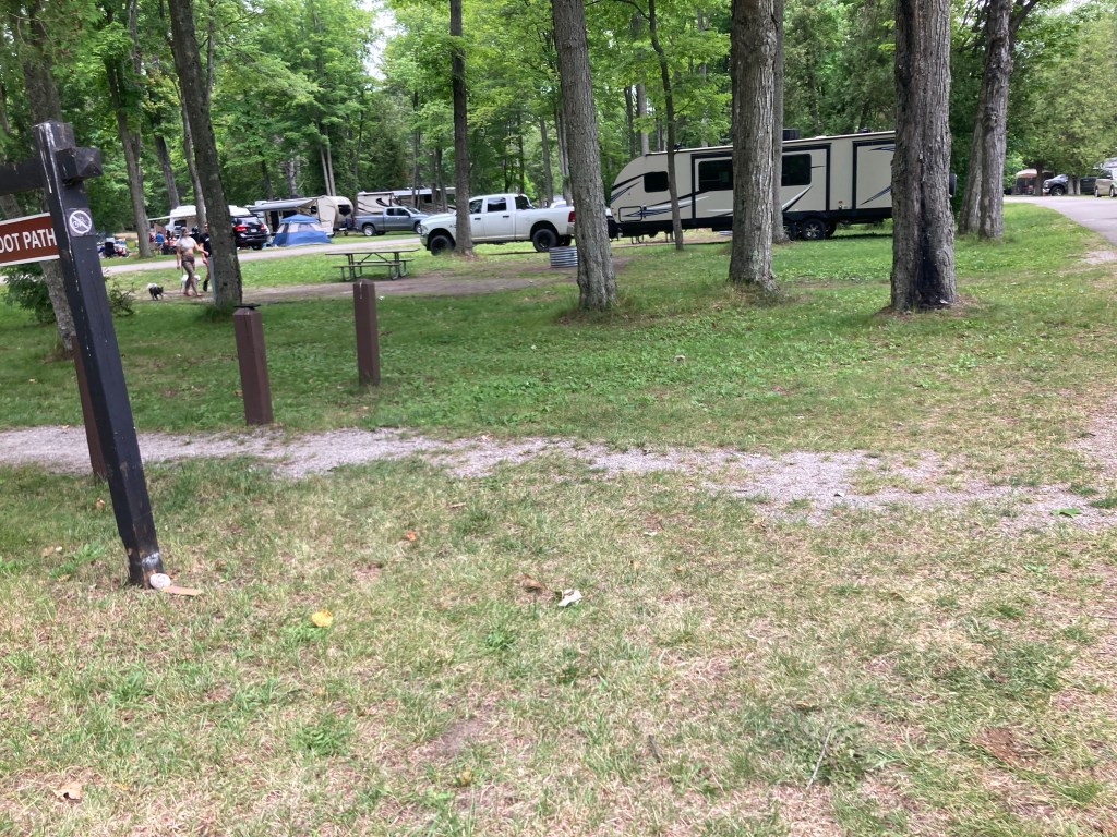 There are hiking and biking trails which are easy to follow. One trail will lead to the edge of the campground to a quiet road that you can continue to walk to get to ‘town’. I walked down to Main Street then back to the Campground on the main road, almost like going around the block. Once I got to town, I found an ice cream shop, coffee shop, grocery store, and pizza place. It looked like a new restaurant went in on the corner of Main St and State St. I couldn’t find the name of it. We got the pizza on our first night from Harbortown Pizza and it was delicious. We did have a hard time calling them, but it is so close to the campground that you could walk there and order in person (which is what we did except we drove).